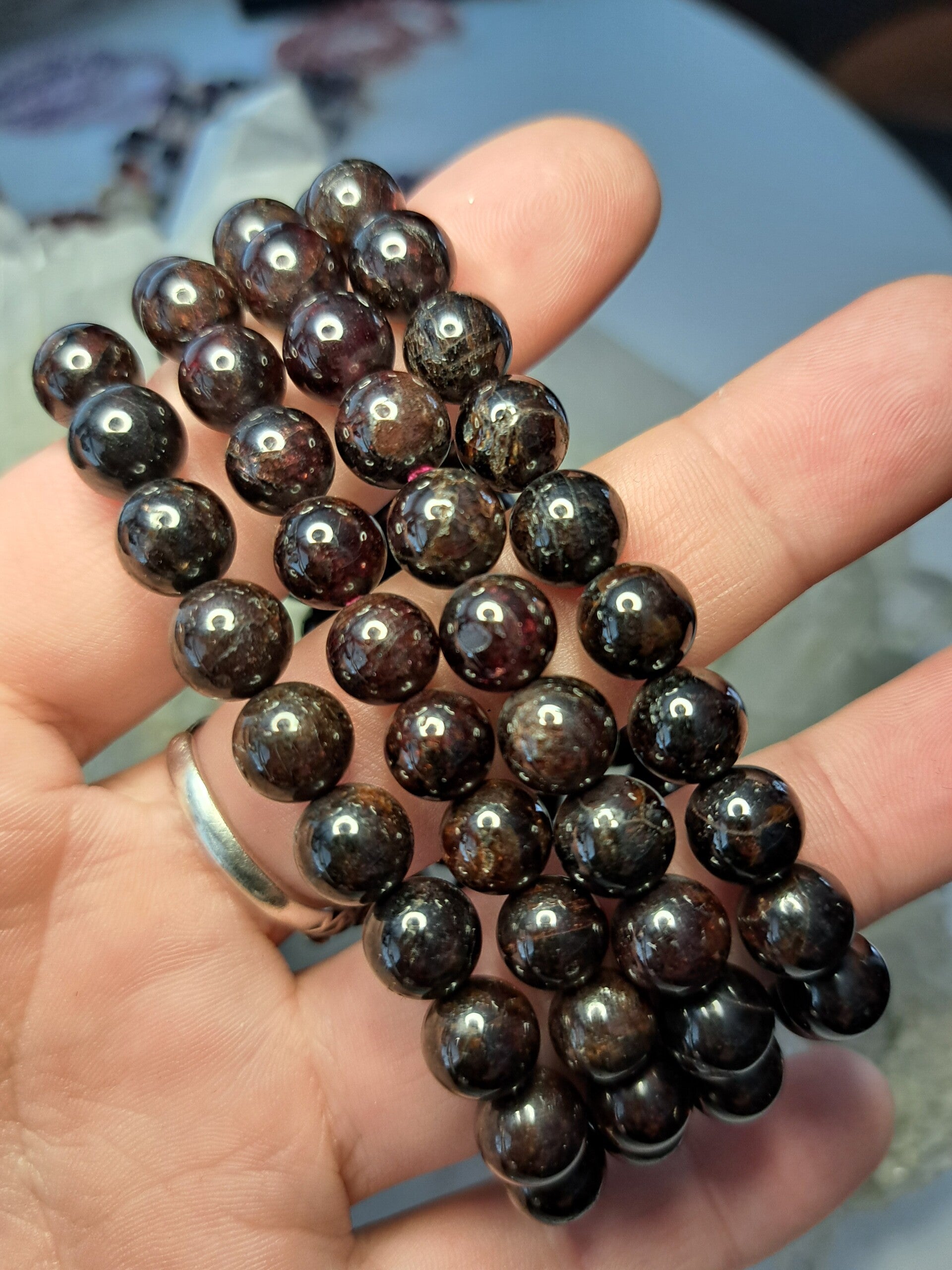 Mooie elastische armband met 8mm grote kraal van dieprode granaat.