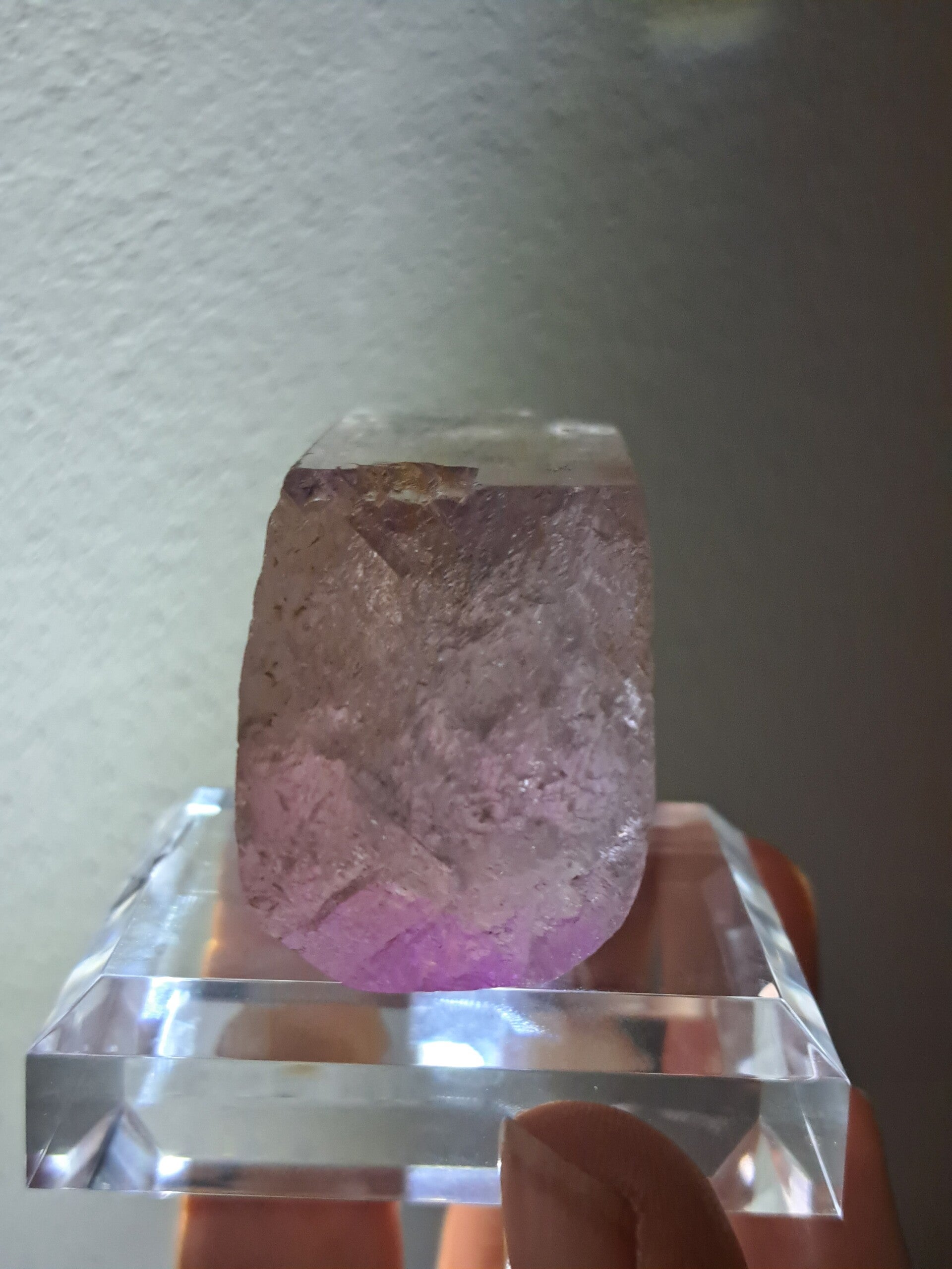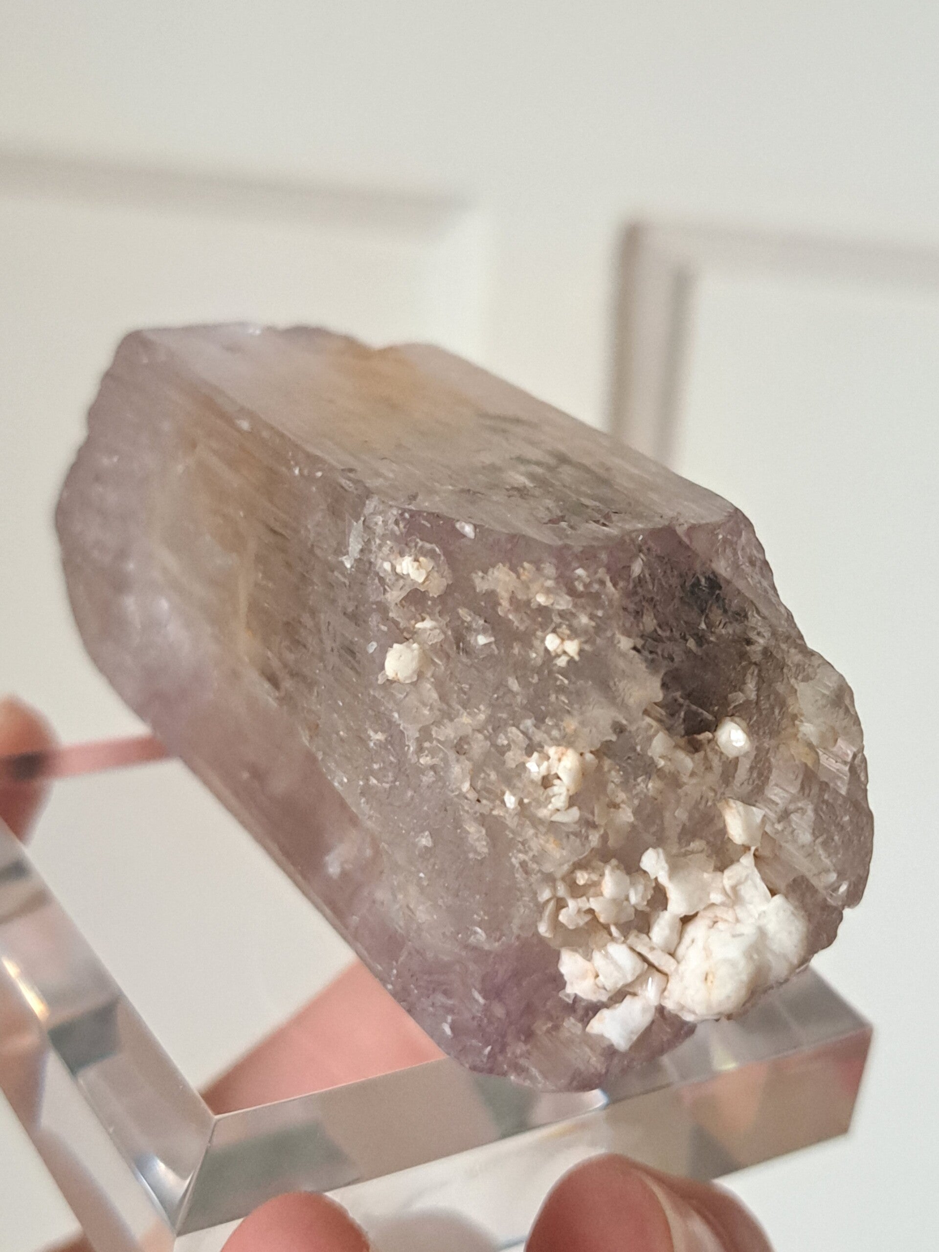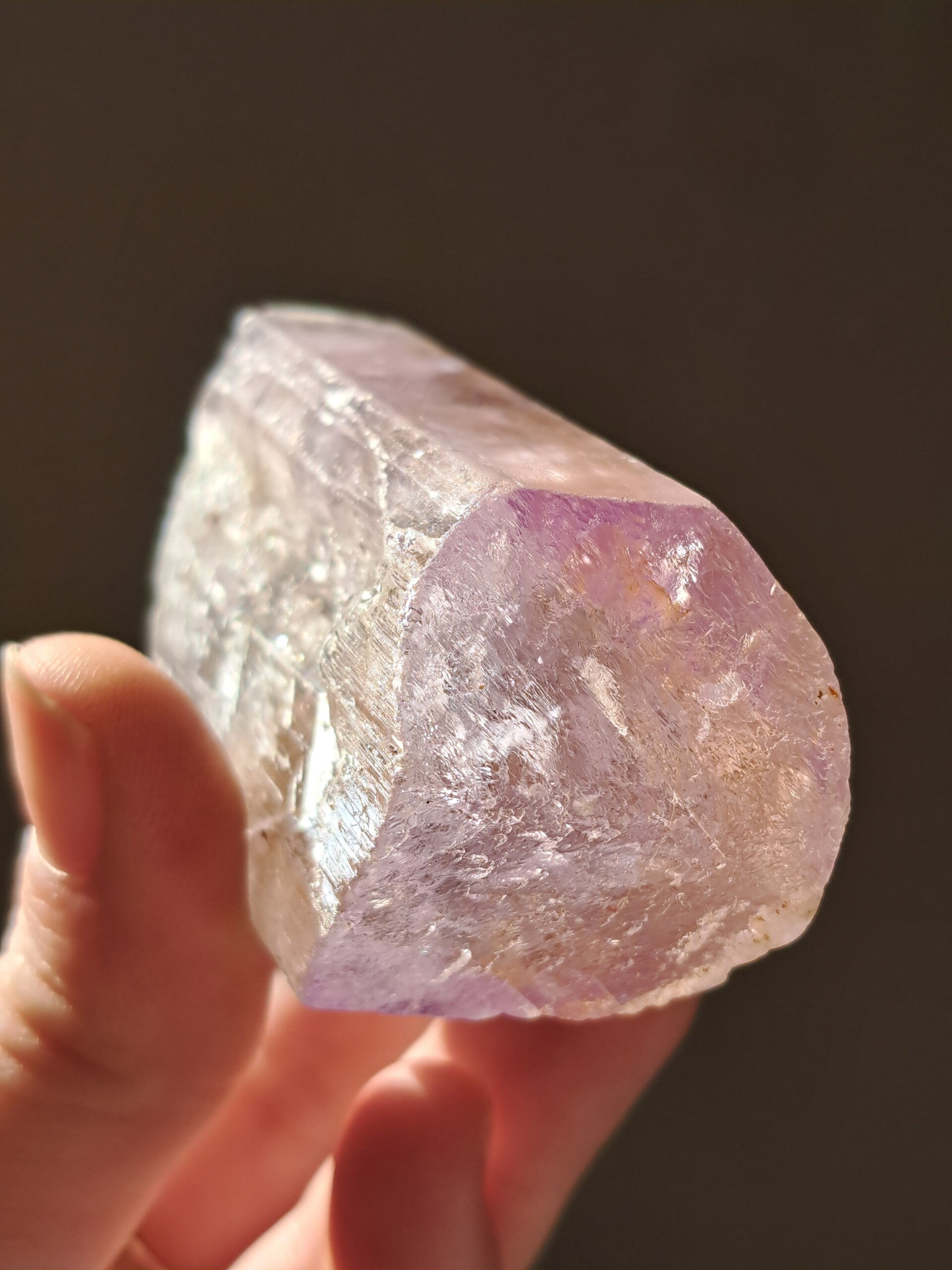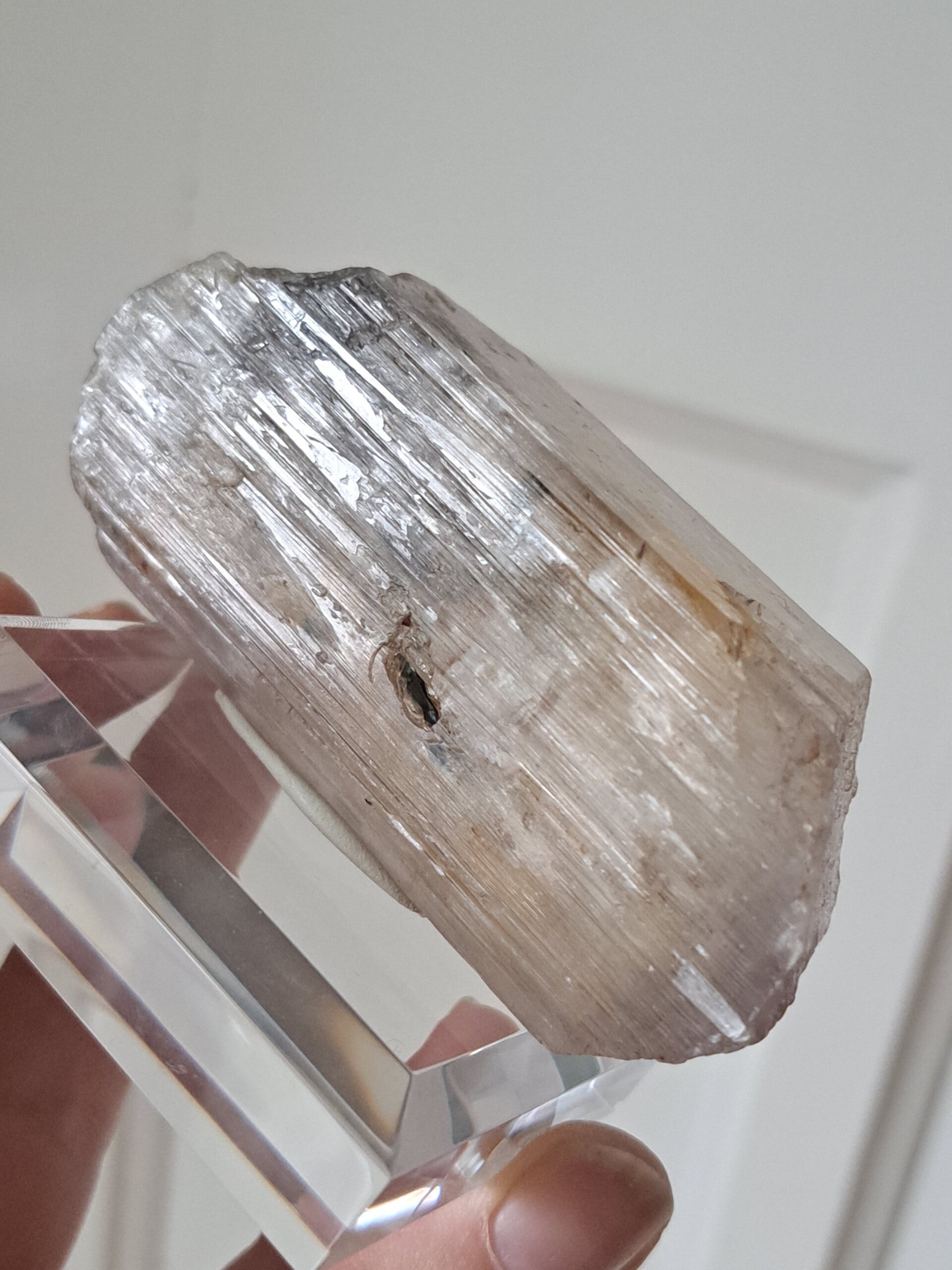 Prachtig, volledig getermineerd stuk meerkleurige Spodumene (Spodumeen/Kunziet), verlopend in kleur van Helder, Roze en Lichtgeel van de ijzerinsluitingen.