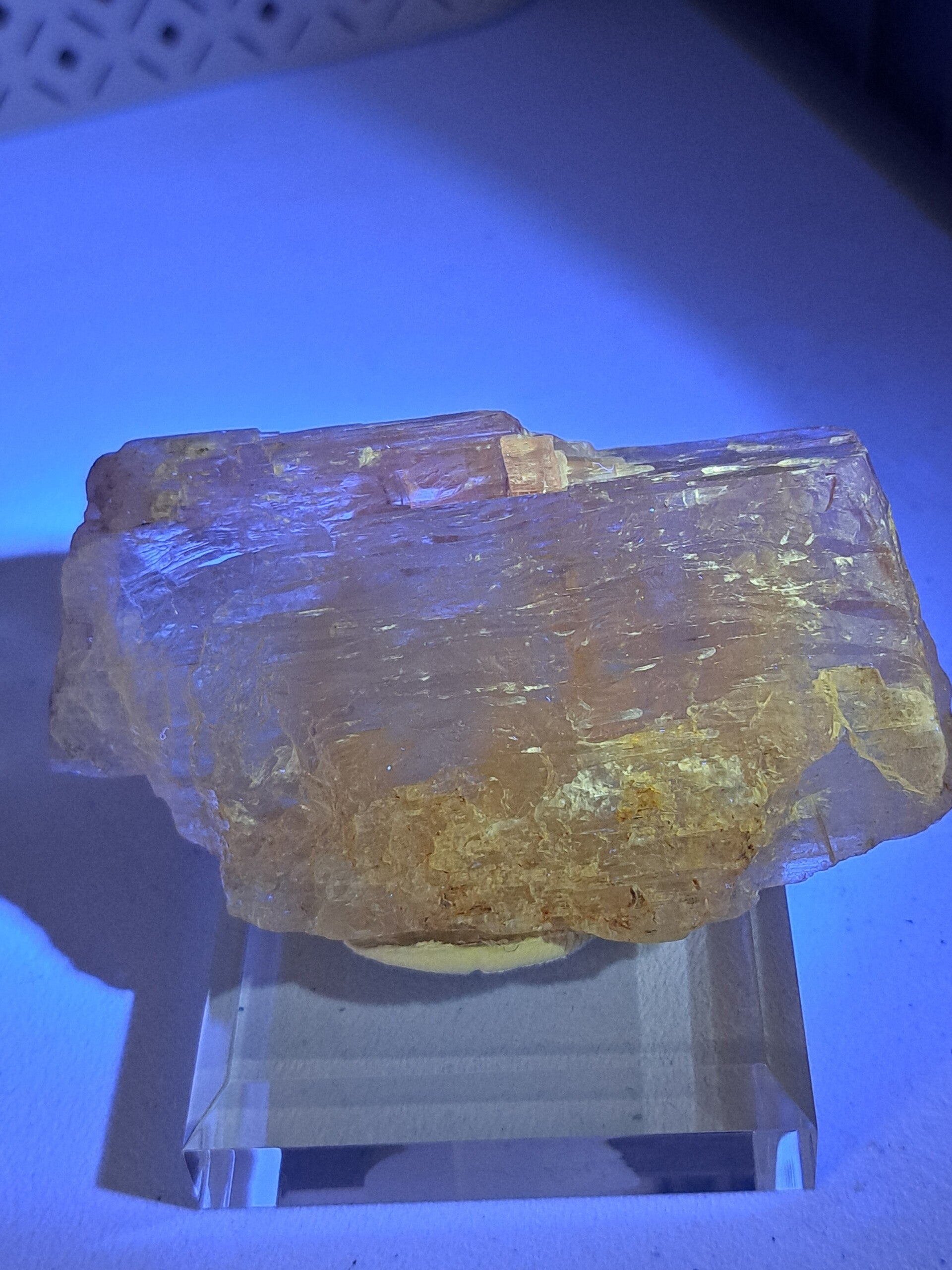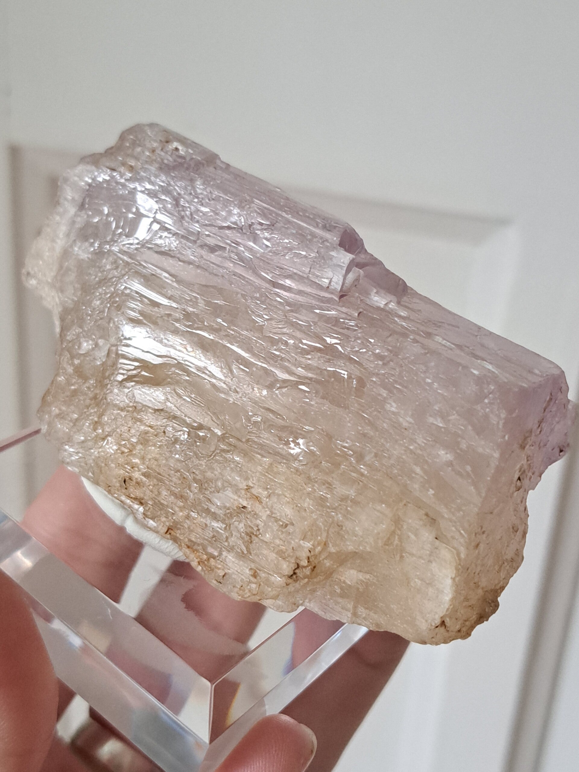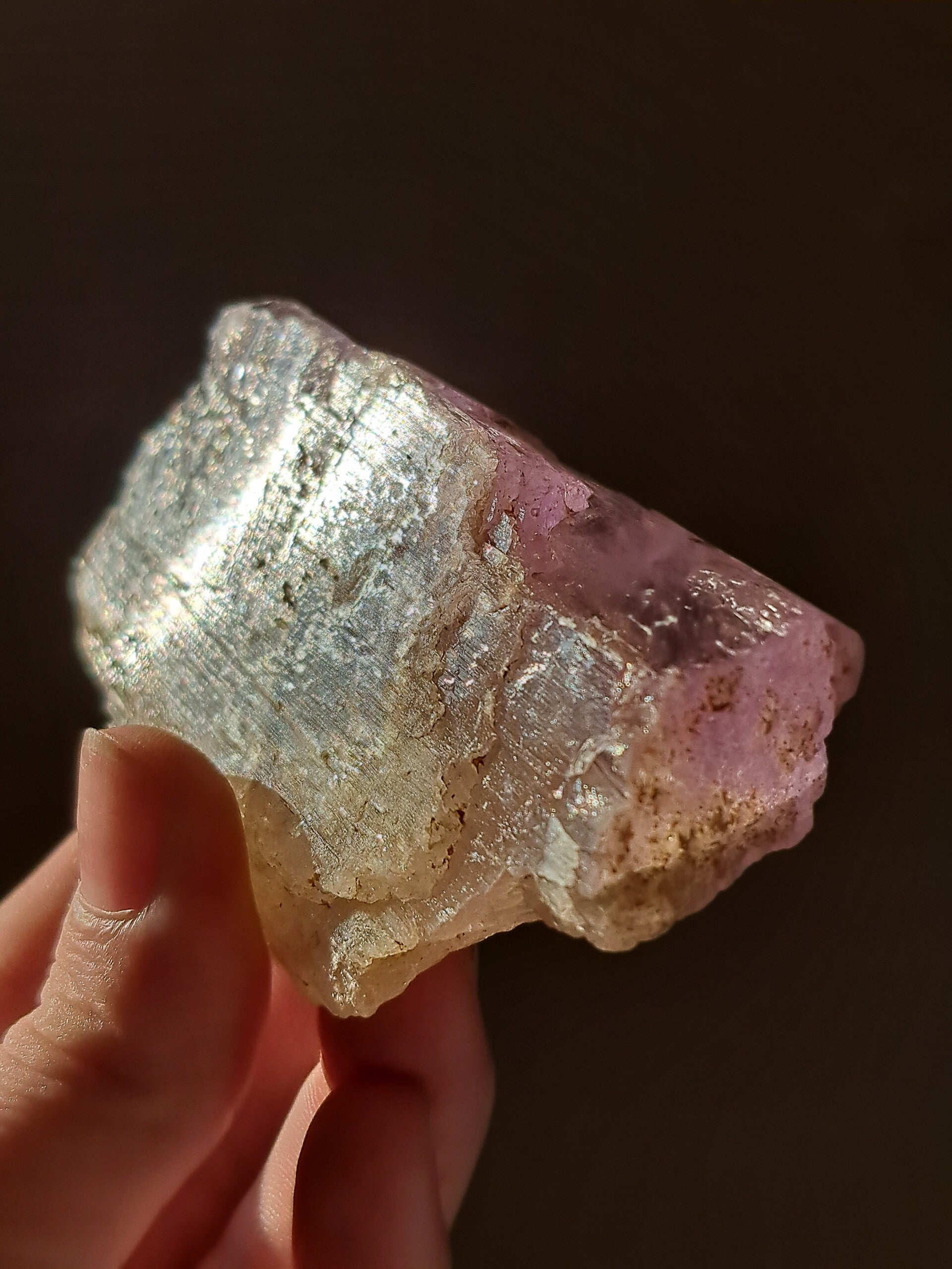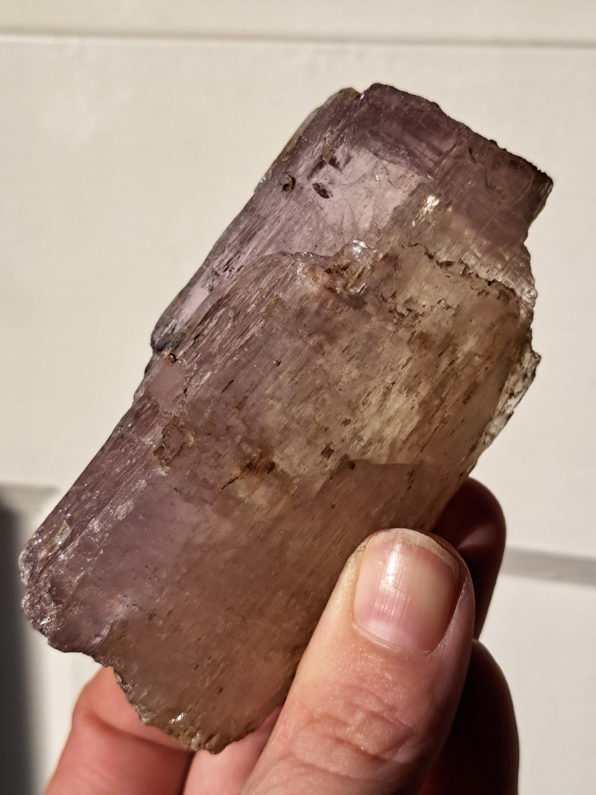 Prachtig, volledig getermineerd stuk meerkleurige Spodumene (Spodumeen/Kunziet), verlopend in kleur van Helder naar geel naar licht roze.