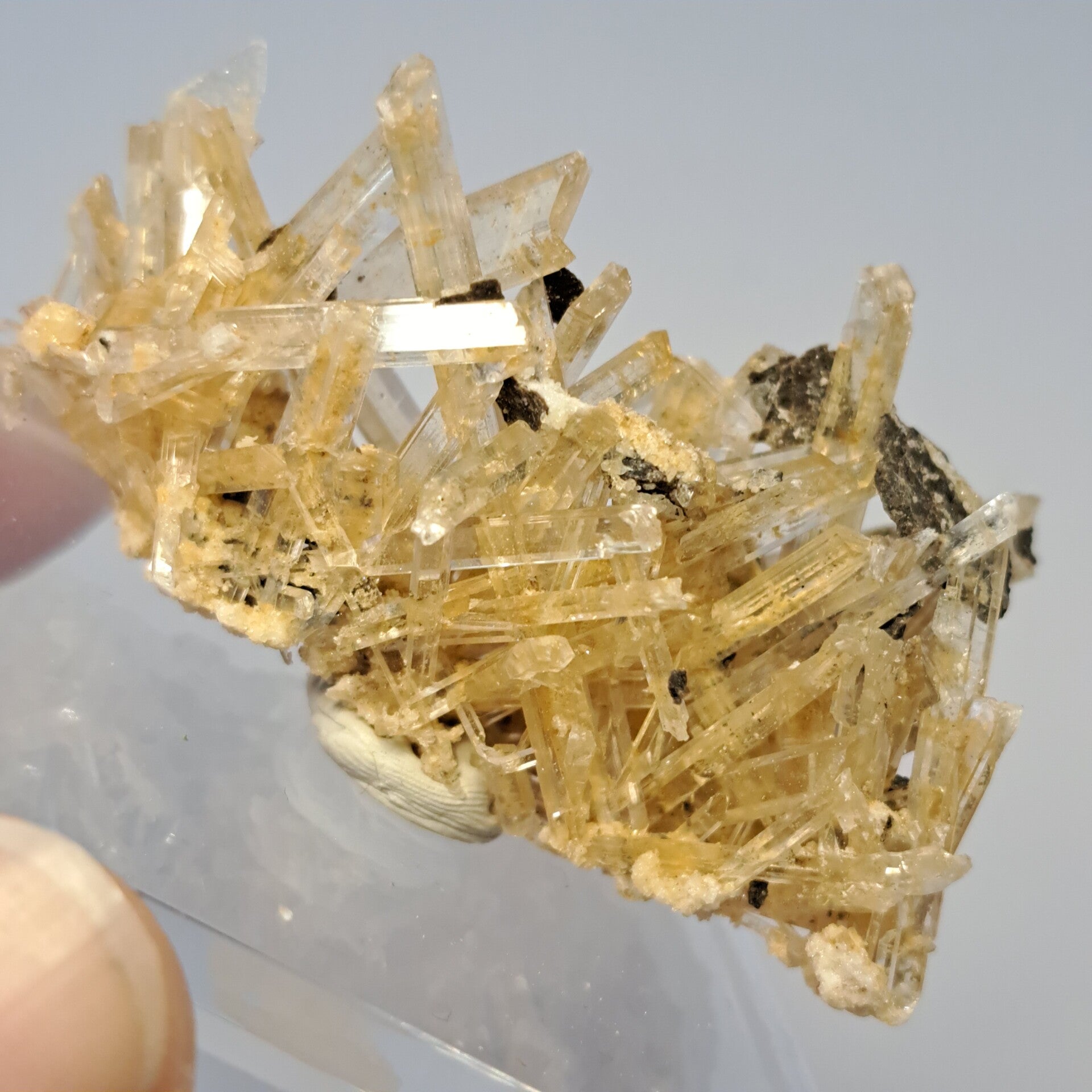 De kristallen uit Lubin (Polen), afkomstig uit de Lubin Główny mijnschachten, staan bekend om hun langwerpige, vaak waaierachtige groei en zachte glans.