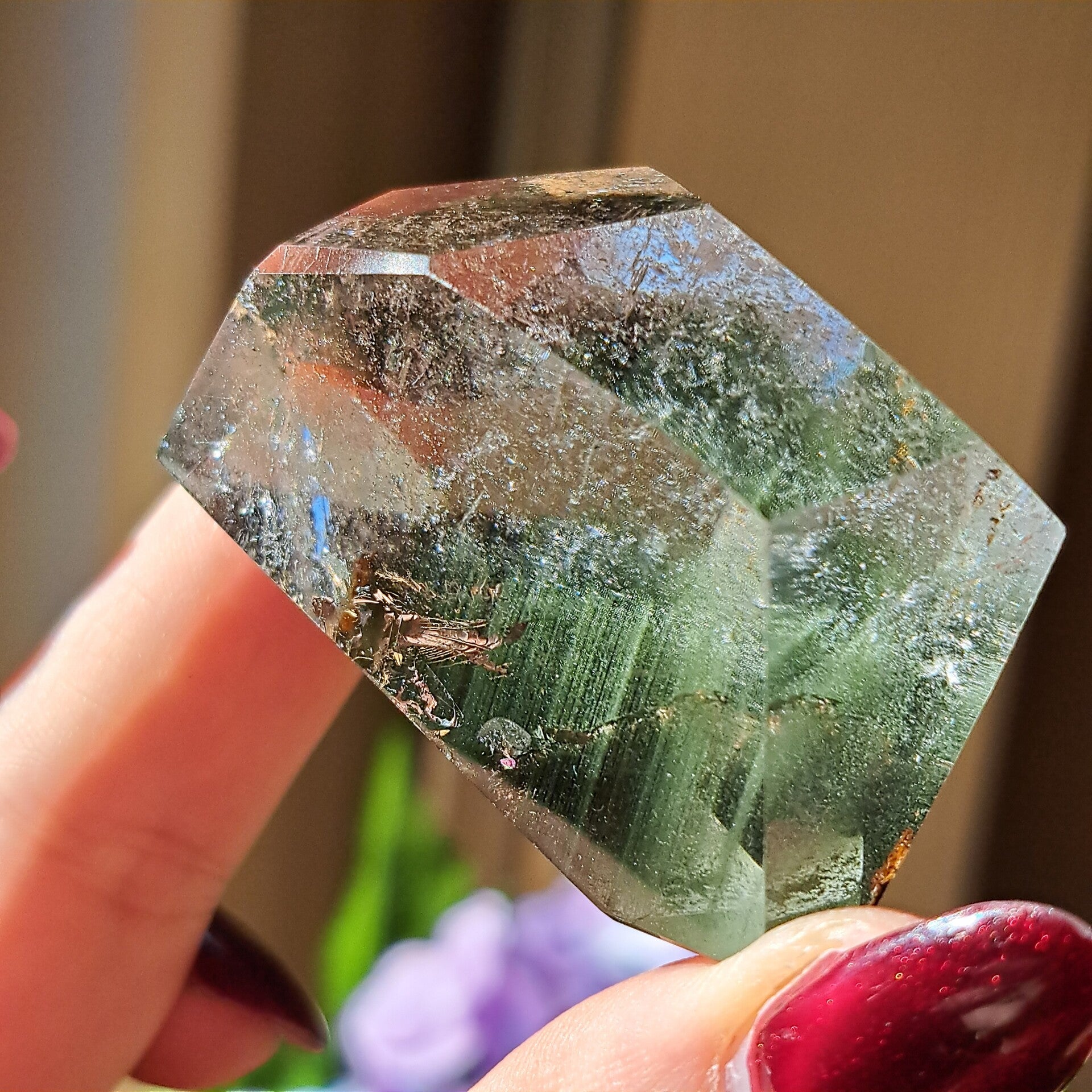Deze prachtige Lodoliet uit India worden ook wel sjamaankwarts genoemd. Ze zijn zo betoverend door de ingesloten landschappen (o.a gecreëerd door ingesloten chloriet en hematiet) dat je er uren naar kan blijven kijken en jezelf bijna kan verliezen!