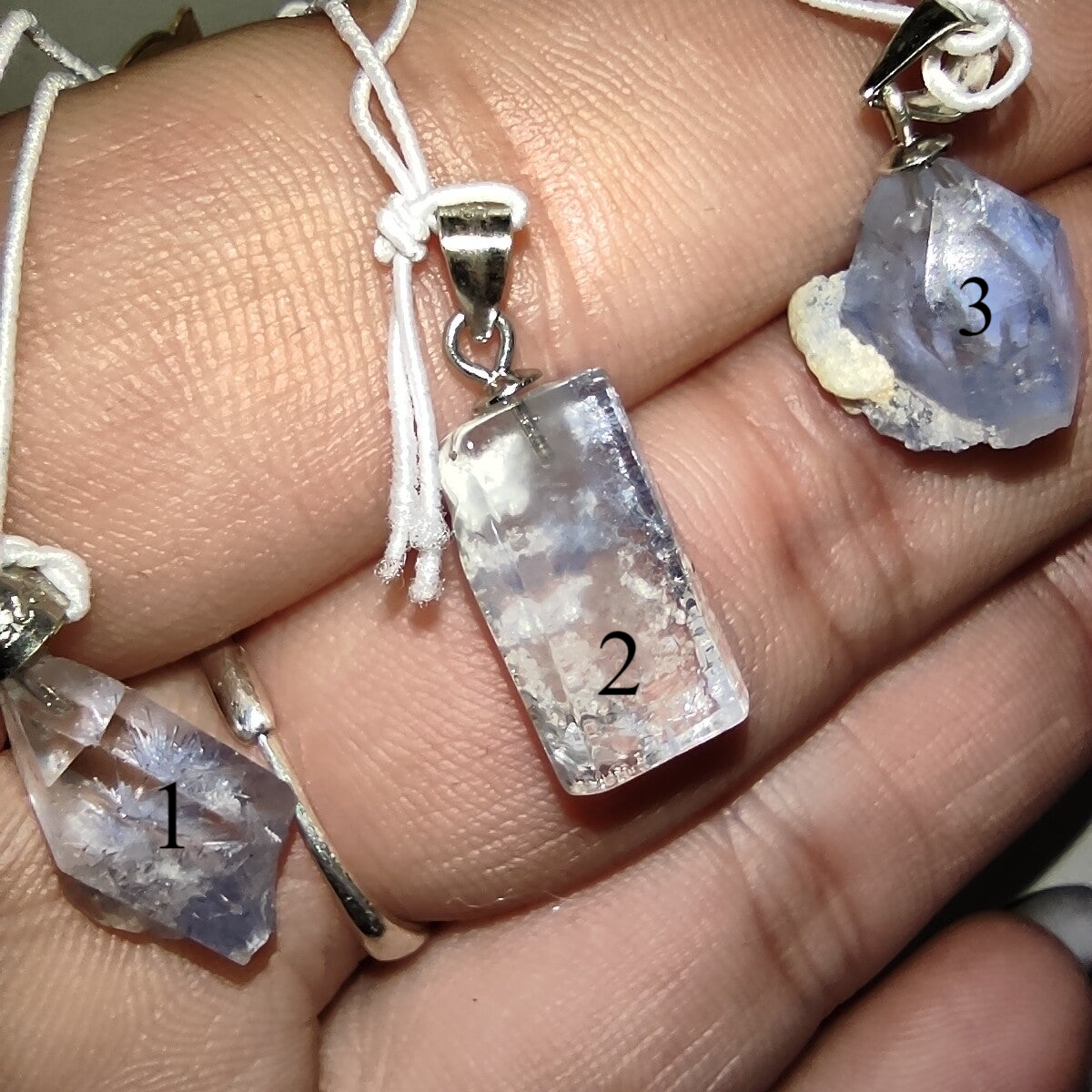 Wat een fijne steen! Deze hangers van dumortieriet in kwarts gezet in 925 zilver.